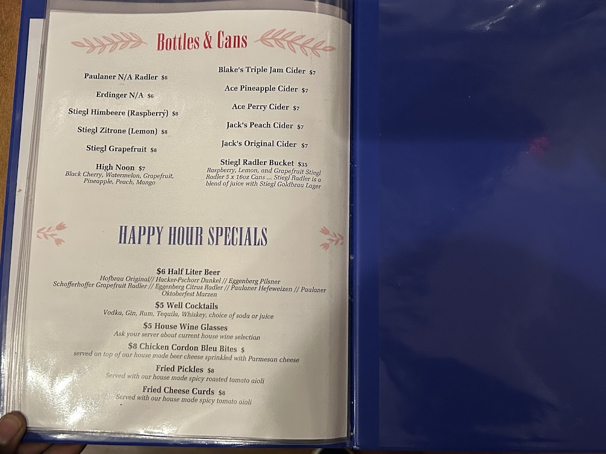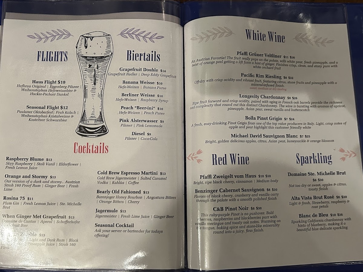 The food is equally enticing, featuring delightful offerings like spatzle with cheese and crunchy parmesan fries. Enjoy hearty sides such as bier cheese and refreshing salads, perfect for complementing your drink selections. The ambiance exudes warmth with attentive service, making it a perfect spot for casual gatherings or special occasions.